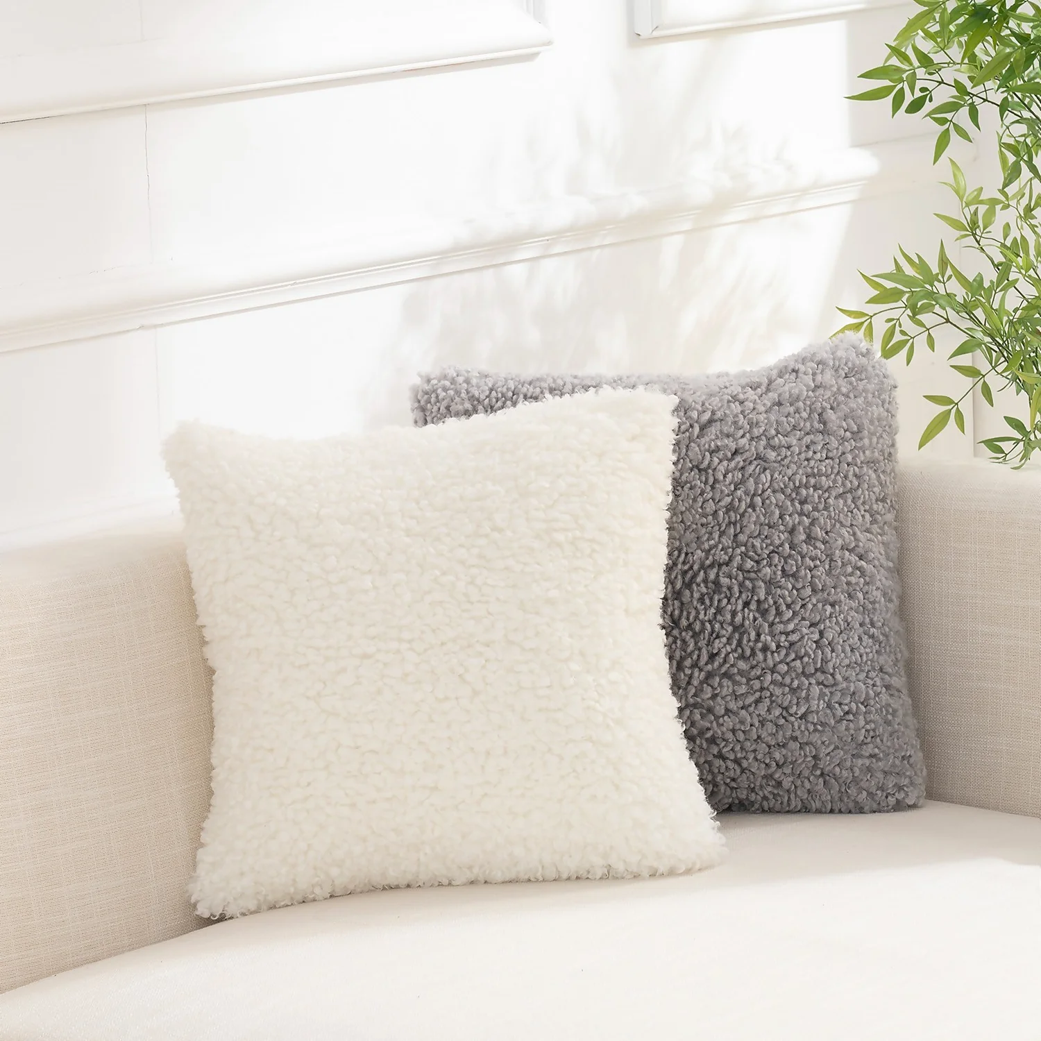 This curly textured cream faux alpaca cushion gives a super soft feel and is a perfect cuddly companion for those chilly winter evenings on the sofa.