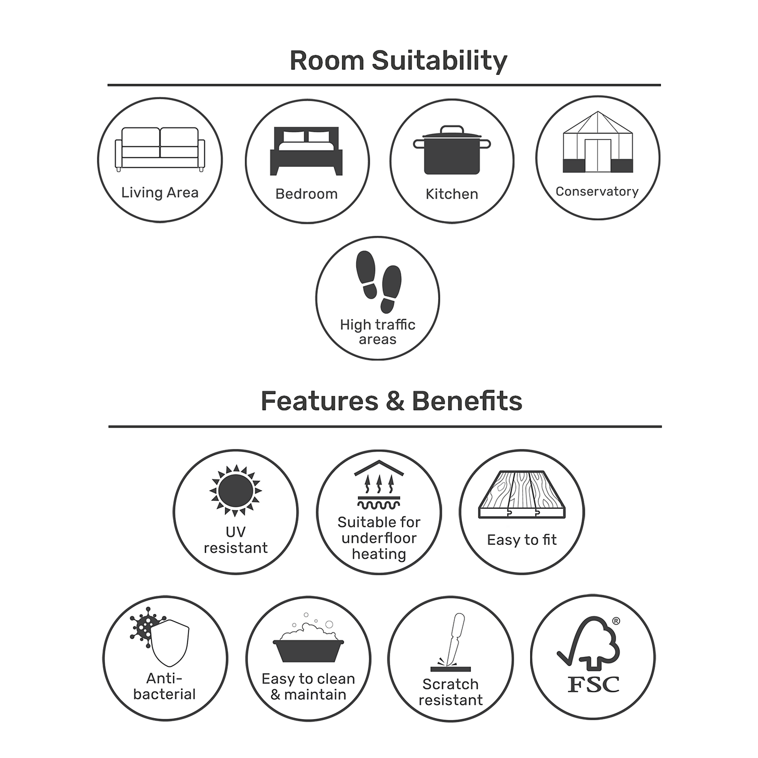 | Rooms Suitable For | Kitchen, living areas, conservatory, high traffic areas |