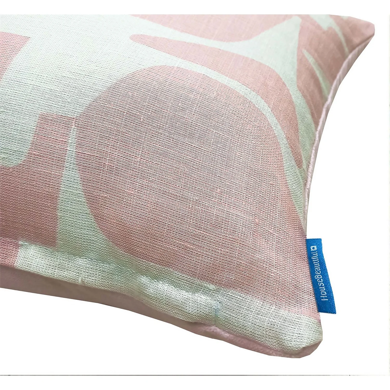 Beautiful pale pink abstract print design on pure, unbleached linen fabric with a 100% cotton velvet reverse.