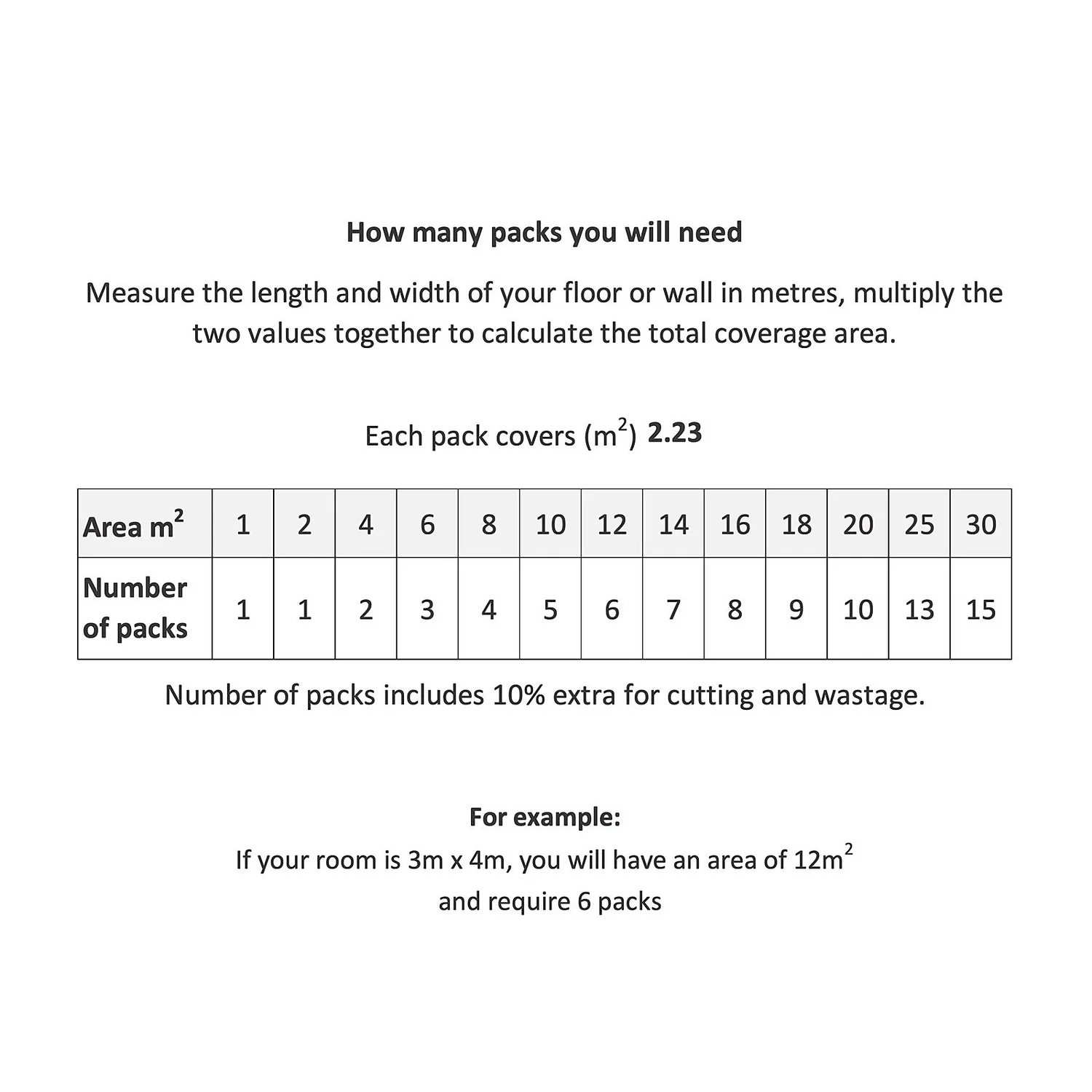 100% waterproof luxury vinyl tile with integral underlay and Tough Core Technology. Ideal for use throughout the house in all living spaces. Cuts easily with a knife to install quickly and simply with the click system. Provides an easy clean flooring solution, resistant to scuffs and stains.