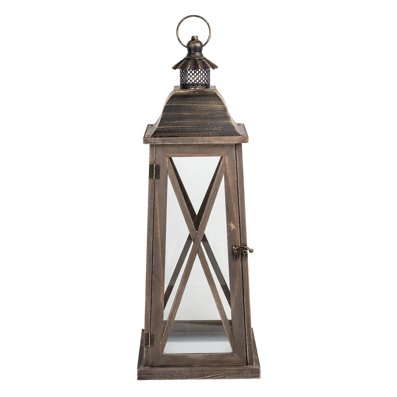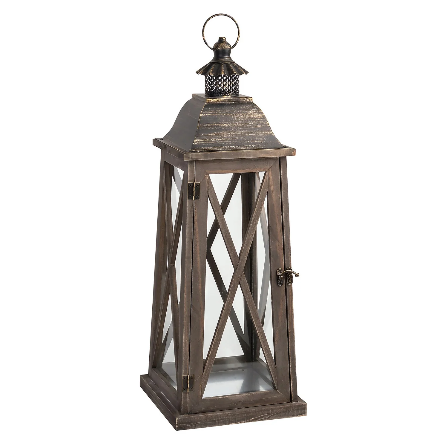 This creatively designed large wooden lantern is sure to add character and rustic charm to your home.