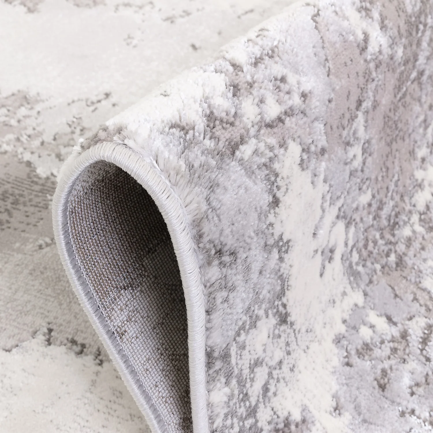 Lustrous pile rug with an etched cloud giving a metallic effect.