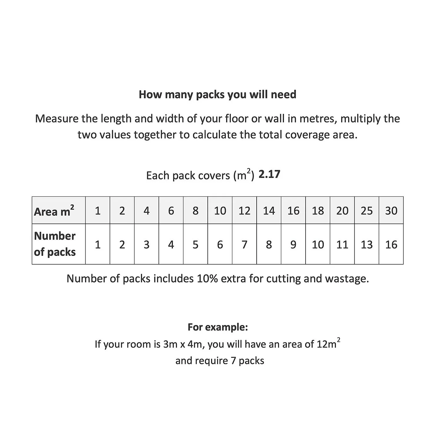 | Coverage Per Pack | 2.17sqm |